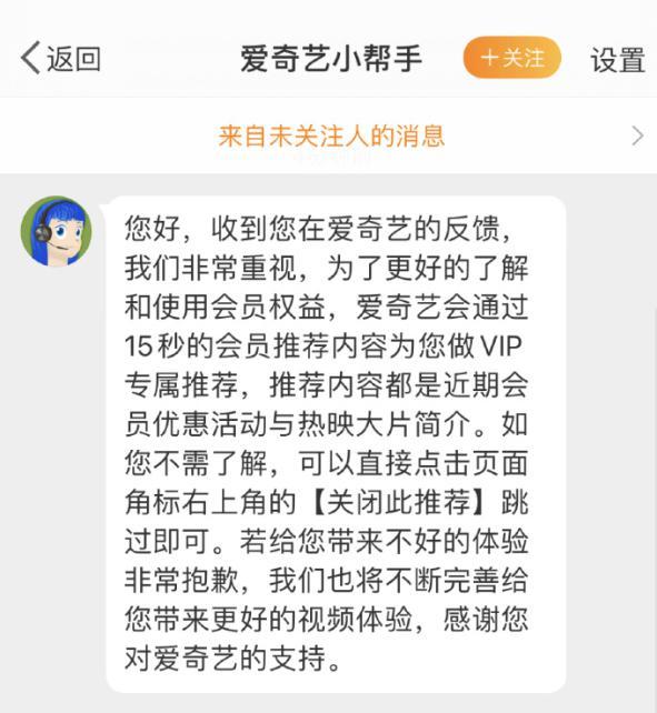 不過有網(wǎng)友反映稱,即便開通了 VIP,愛奇藝仍然會播放 15 秒的會員專屬廣告,雖然能夠關閉,但還是讓人不爽。